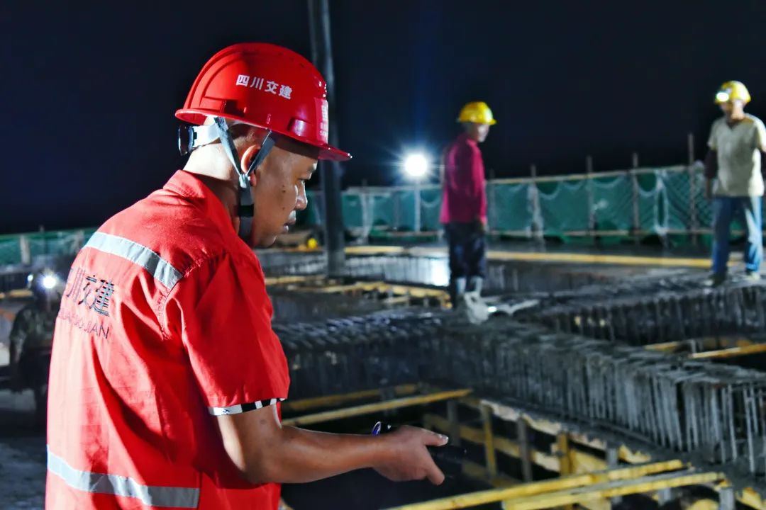 繼續(xù)前進(jìn),抓好復(fù)工復(fù)產(chǎn) 在做好搶險(xiǎn)救災(zāi)一線后勤保障工作的同時(shí),楊帆也積極投入到復(fù)工復(fù)產(chǎn)中,及時(shí)編制復(fù)工復(fù)產(chǎn)專項(xiàng)施工方案,組織進(jìn)行震后隱患二次排查和檢測(cè),確保項(xiàng)目部盡快按下“啟動(dòng)鍵”。9月15日凌晨1點(diǎn),大杉樹樞紐互通C匝道第1聯(lián)預(yù)應(yīng)力現(xiàn)澆連續(xù)箱梁完成混凝土澆筑,標(biāo)志著瀘石TJ10項(xiàng)目部復(fù)工率達(dá)100%。一直堅(jiān)守現(xiàn)場(chǎng)的楊帆眼里布滿紅血絲,但他很興奮,“經(jīng)過這次地震的考驗(yàn),大家更有拼勁、沖勁、干勁了,接下來我們會(huì)加快腳步、全力沖刺,確保完成全年生產(chǎn)任務(wù)!” “我是四川路橋人,是道路建設(shè)者、守護(hù)者,哪里有困難、哪里最艱辛,我就去哪里!”楊帆繼續(xù)在搶險(xiǎn)救災(zāi)和生產(chǎn)建設(shè)一線發(fā)光發(fā)熱,以實(shí)干擔(dān)當(dāng)詮釋四川路橋人的責(zé)任和擔(dān)當(dāng)。