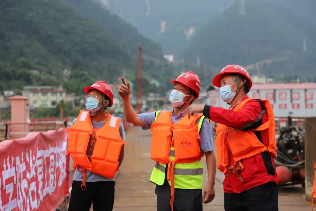 “倒、倒、倒,停……”“挖機上來……”“再往前來點……”。搶修現(xiàn)場,陳甫君指揮的“嘶吼聲”夾雜著余震山體落石的垮塌聲、機械作業(yè)的嗡嗡聲、渣車填渣的嗡鳴聲,響徹山谷。9月8日上午,當(dāng)接到在得妥特大橋瀘定岸搶建臨時碼頭的任務(wù)后,陳甫君親自帶領(lǐng)臨時組建的搶建隊伍出發(fā)去搶建碼頭。