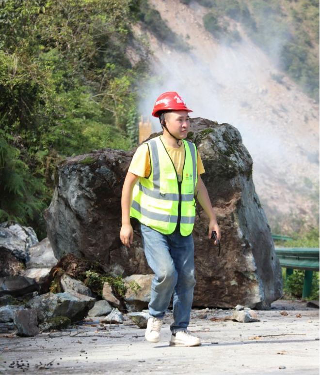 “既然我們選擇奔赴搶險救災(zāi)一線,就要克服一切困難,戰(zhàn)勝一切恐懼,這是我的責(zé)任和義務(wù)!”四川路橋交建集團隧道公司瀘石高速TJ8項目部工程科青年職工楊國強手握對講機,堅定地站在碎石中,指揮機械打通一條條“生命通道”。9月10日,在搶險一線連續(xù)奮戰(zhàn)數(shù)日的楊國強接到任務(wù),因地震發(fā)生的山體垮塌導(dǎo)致Y021公路通往幸福村、躍進村的村道被阻斷,那是兩村村民外出的唯一一條主干道。“再硬的骨頭也必須啃下!”憑著多年的工作經(jīng)驗,楊國強迅速摸清作業(yè)環(huán)境、排查安全隱患,以對講機為“指揮棒”,站在懸崖邊上全身心地指揮著挖掘機清理道路。歷時9日,Y021村道終于在19日順利搶通!